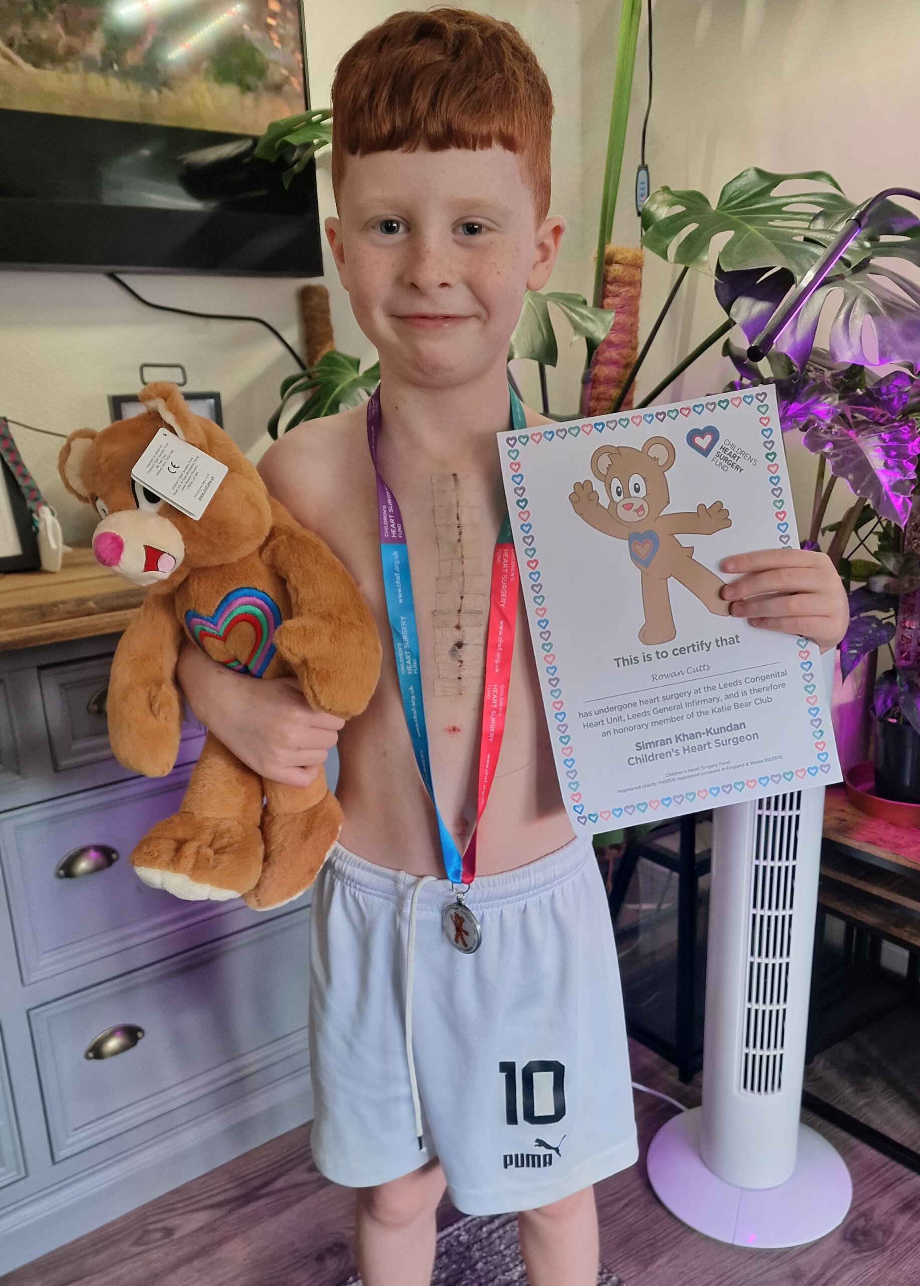 “This was done in September 2025, when Rowan was seven years old. The Leeds Congenital Heart Unit was absolutely brilliant from start to finish. The children’s heart ward (Ward L51) was amazing, and the support from CHSF made the whole experience so much easier to handle as parents of a heart warrior.